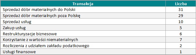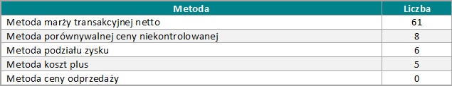 Ministerstwo Finansów opublikowało również informacje dotyczące przedmiotu zawartych uprzednich porozumień cenowych. W ramach 80 zawartych APA przeanalizowano wybrane metody ustalania cen oraz typy transakcji. Zestawienie to omówione zostało w poniższych tabelach.