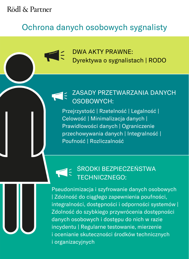 W związku z powyższym przetwarzanie danych osobowych sygnalisty oraz innych uczestników postępowania whistleblowingowego powinno opierać się na ogólnych zasadach wskazanych w RODO, tj.: